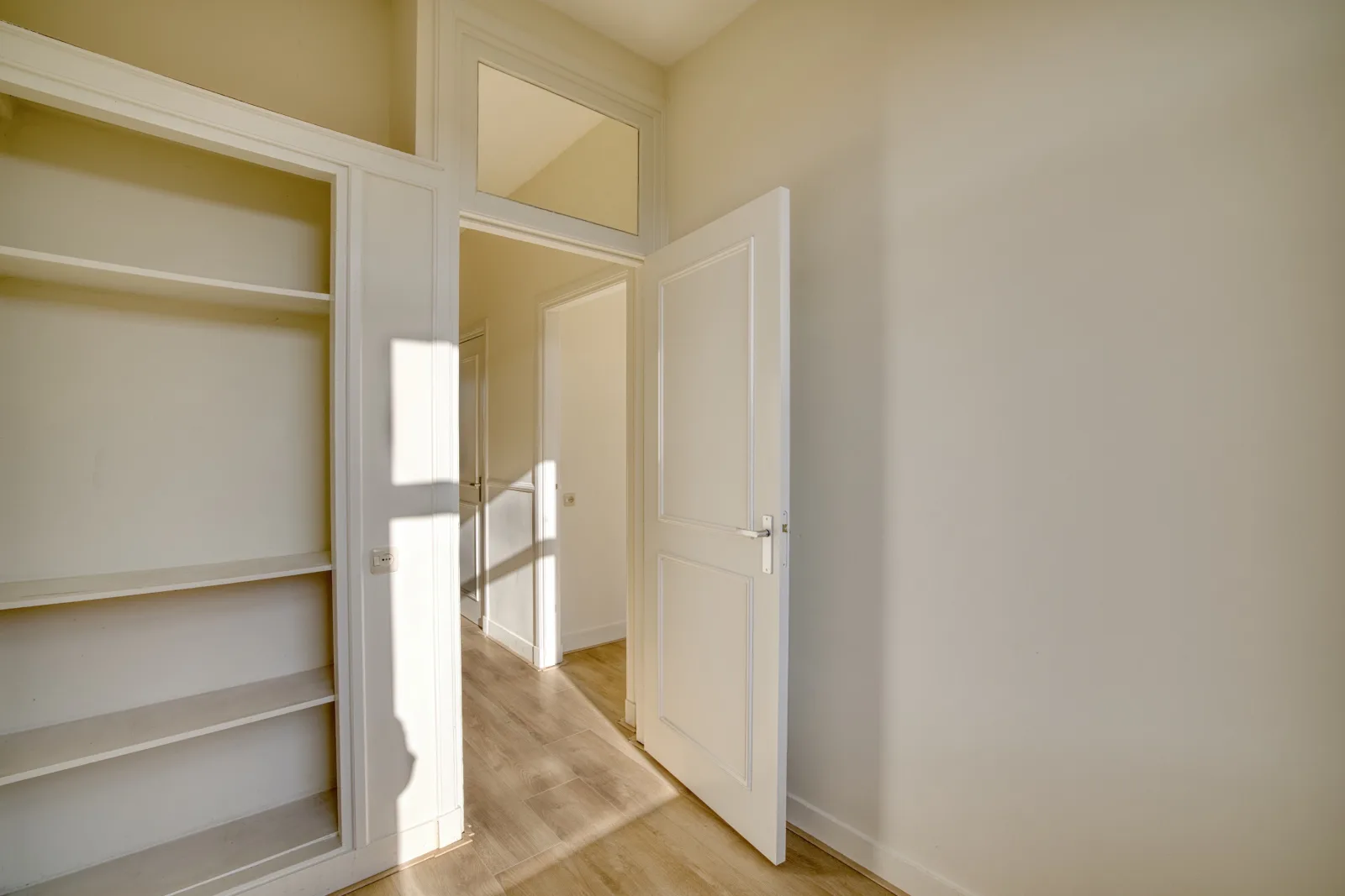 Dit appartement is gelegen achter een klassieke Statenkwartier-gevel, in een voormalig herenhuis met hoge plafonds en een prettige, open indeling. In de beeldtaal hebben wij bewust gekozen voor rust, licht en helderheid. De reportage benadrukt de royale verhoudingen van de kamers, de gunstige lichtinval en het recente renovatieniveau, zonder de charme van het pand te verliezen.