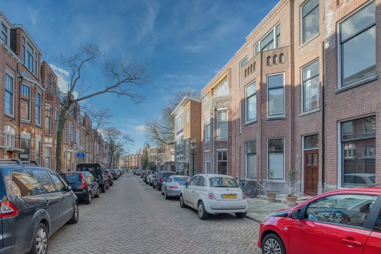 De voorzijde is vastgelegd met aandacht voor de straatbeleving: een van de mooiste straten van het Statenkwartier, met karakteristieke bebouwing en de levendigheid van de Frederik Hendriklaan op loopafstand. Dit geeft direct context en versterkt het gevoel van locatie, een essentieel verkoopargument.