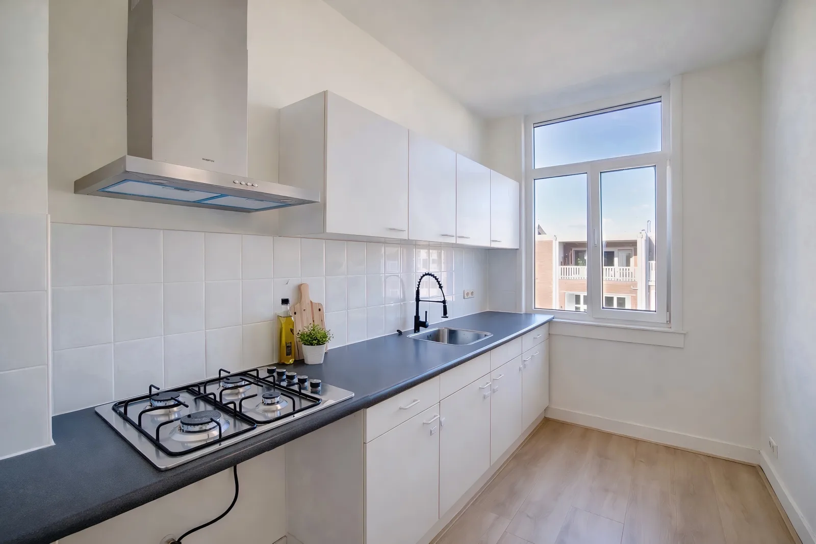 Dit appartement is gelegen achter een klassieke Statenkwartier-gevel, in een voormalig herenhuis met hoge plafonds en een prettige, open indeling. In de beeldtaal hebben wij bewust gekozen voor rust, licht en helderheid. De reportage benadrukt de royale verhoudingen van de kamers, de gunstige lichtinval en het recente renovatieniveau, zonder de charme van het pand te verliezen.